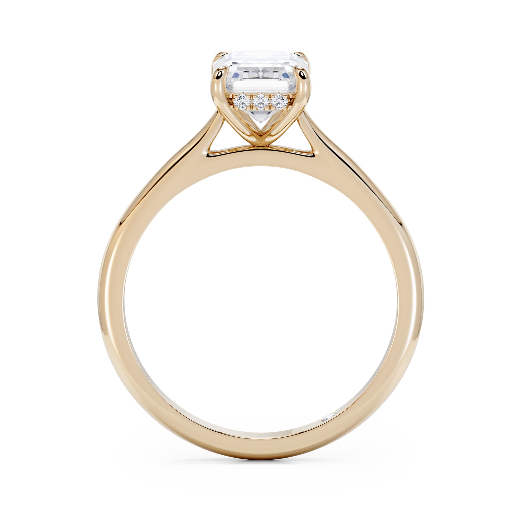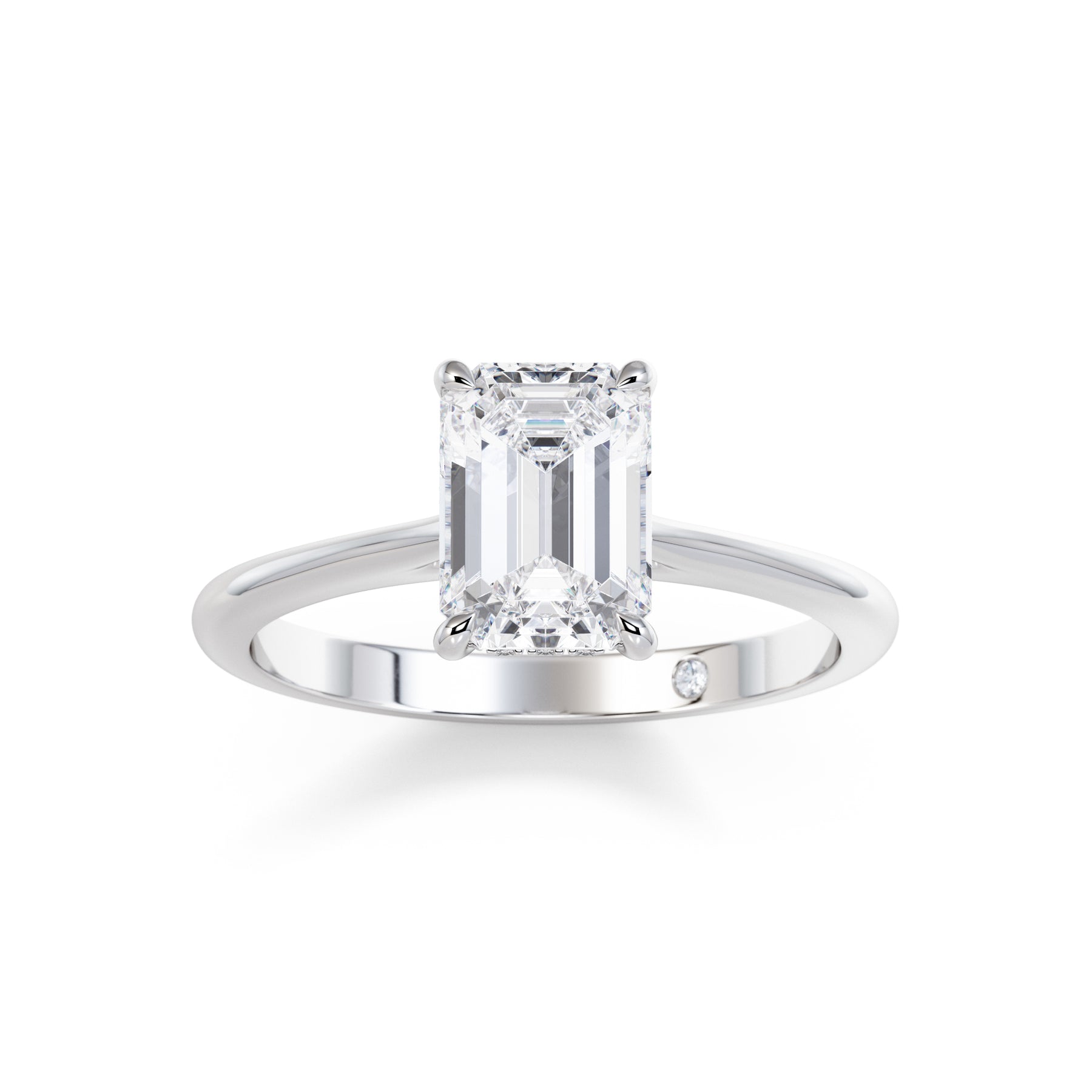 With its crisp geometry and step-cut facets, the emerald cut feels fresh and modern in this timeless setting, creating a look that’s both minimalist and undeniably luxurious.