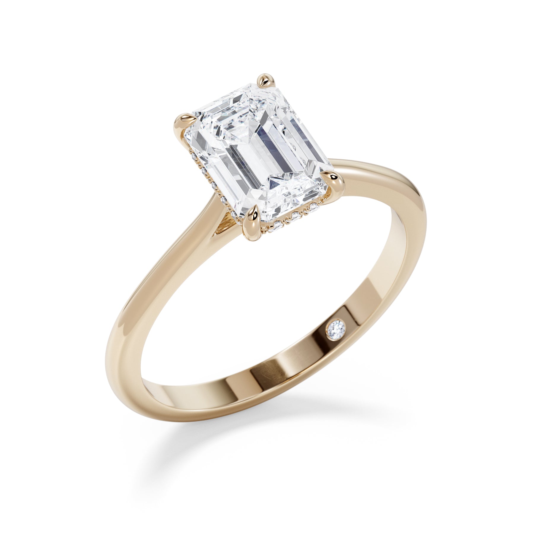 Hidden just beneath your diamond, a subtle hidden halo of micro-set diamonds lends an intimate touch - a little sparkle, just for you.