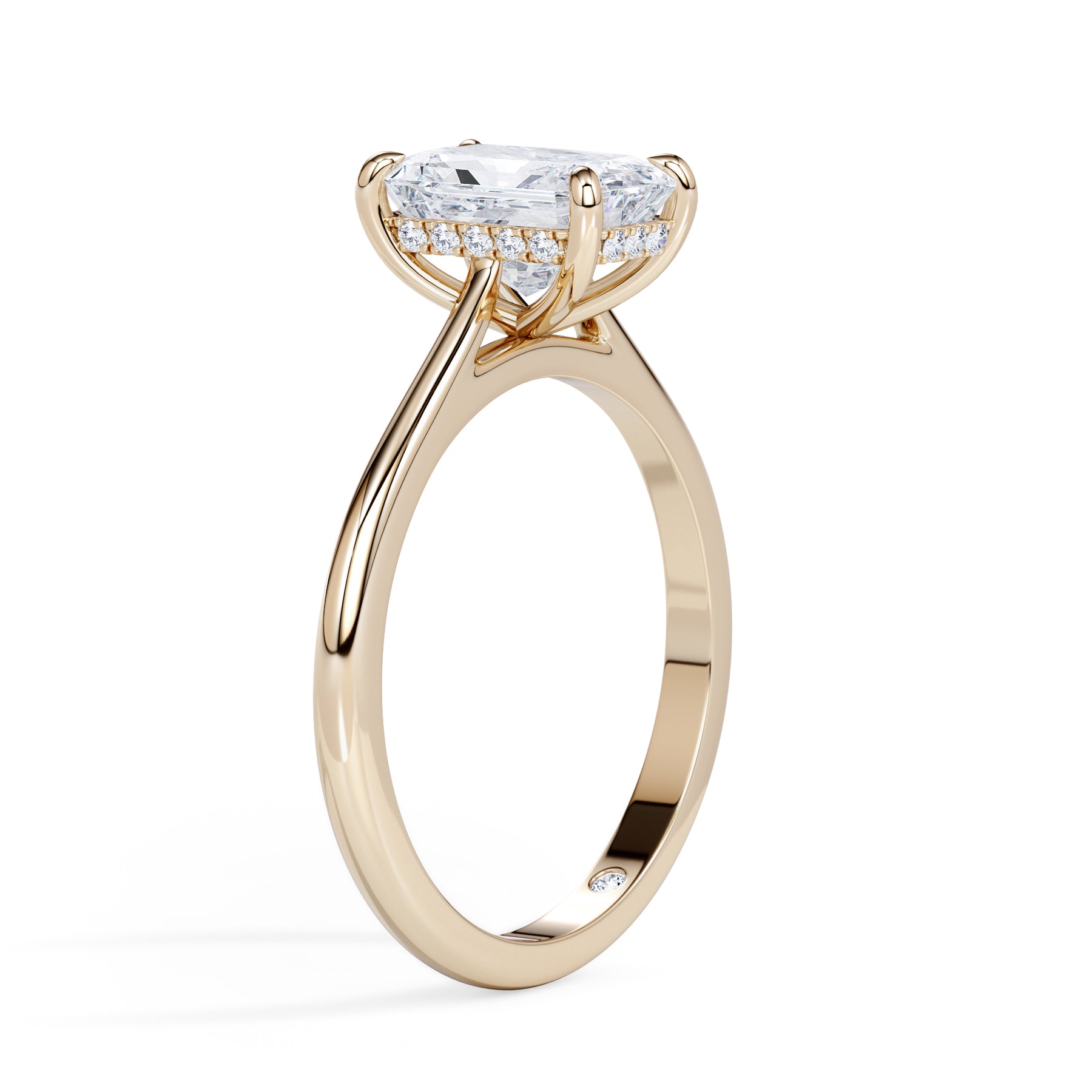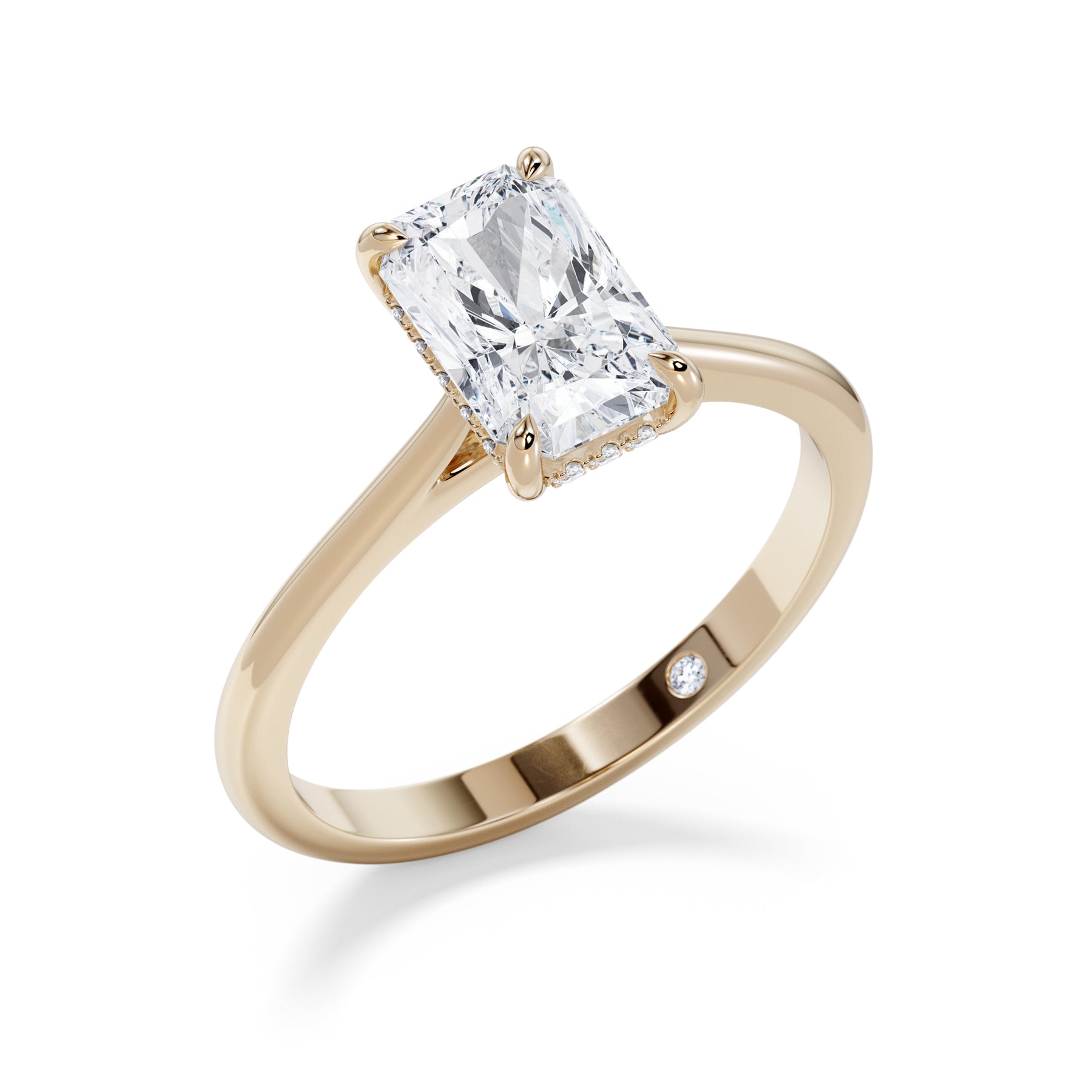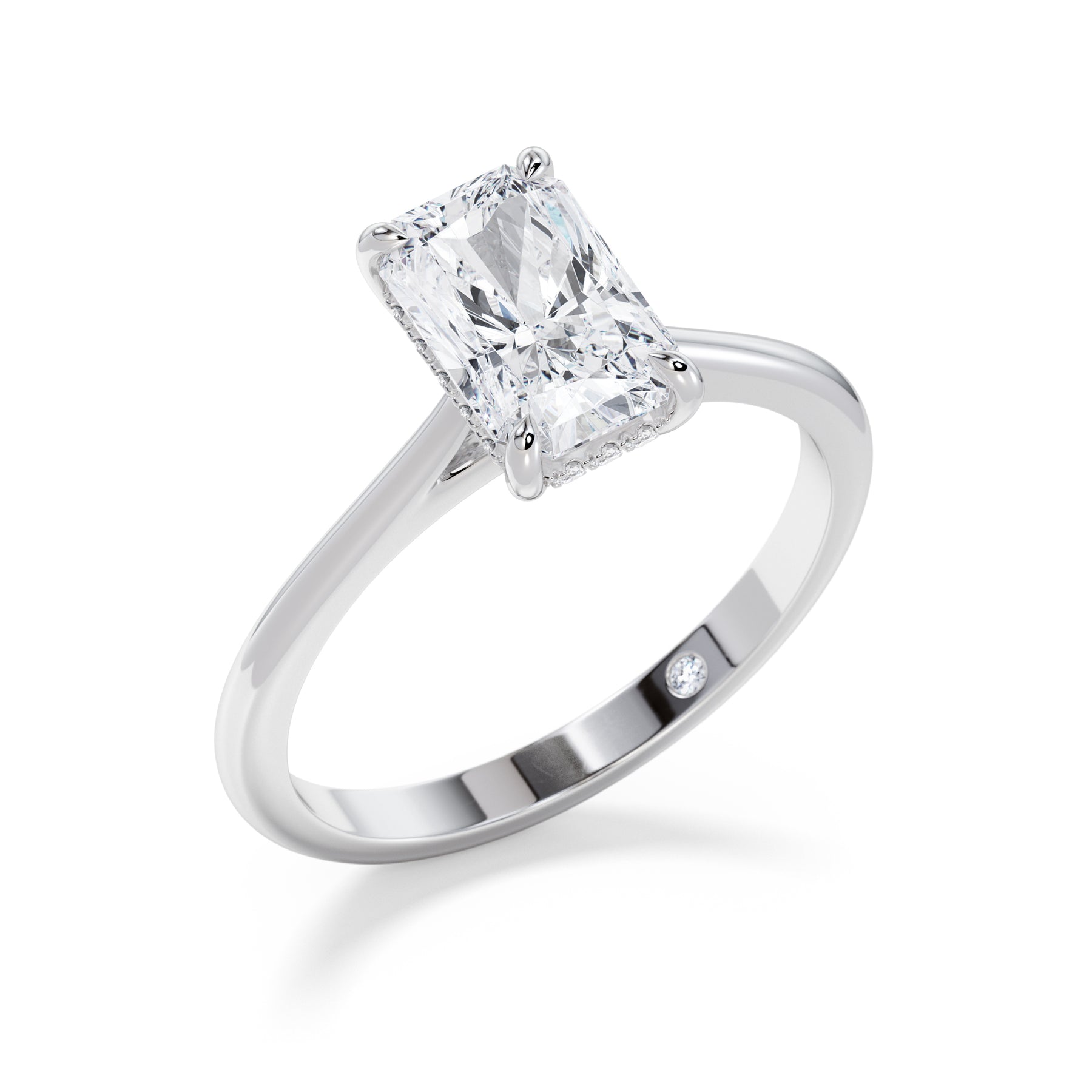 Hidden just beneath your diamond, a subtle hidden halo of micro-set diamonds lends an intimate touch - a little sparkle, just for you.